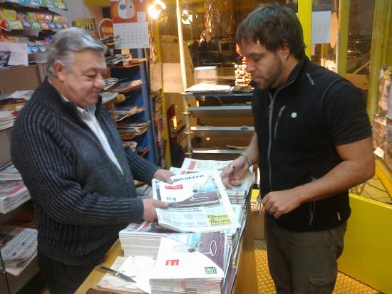 Reparto del catálogo de Eroski en kioscos del País Vasco, La Rioja y Cantabria, promovido por la agencia Mediaplanning Group Barcelona.